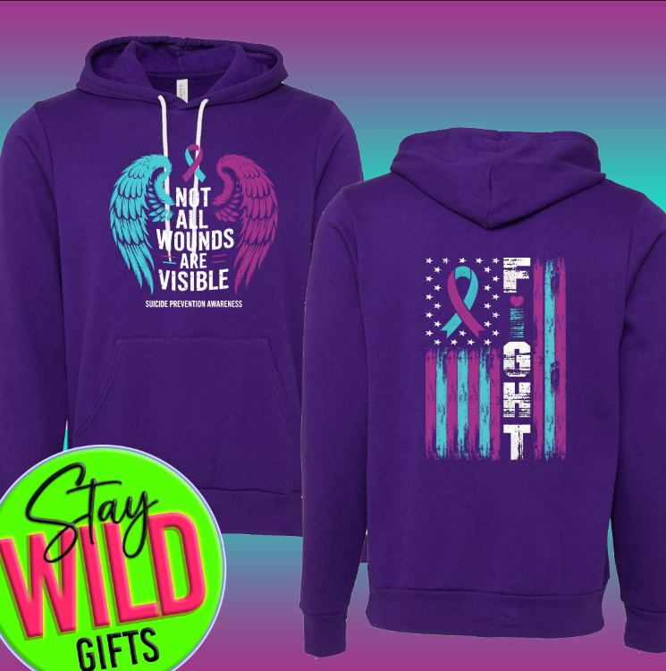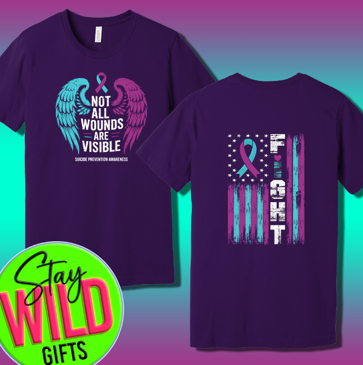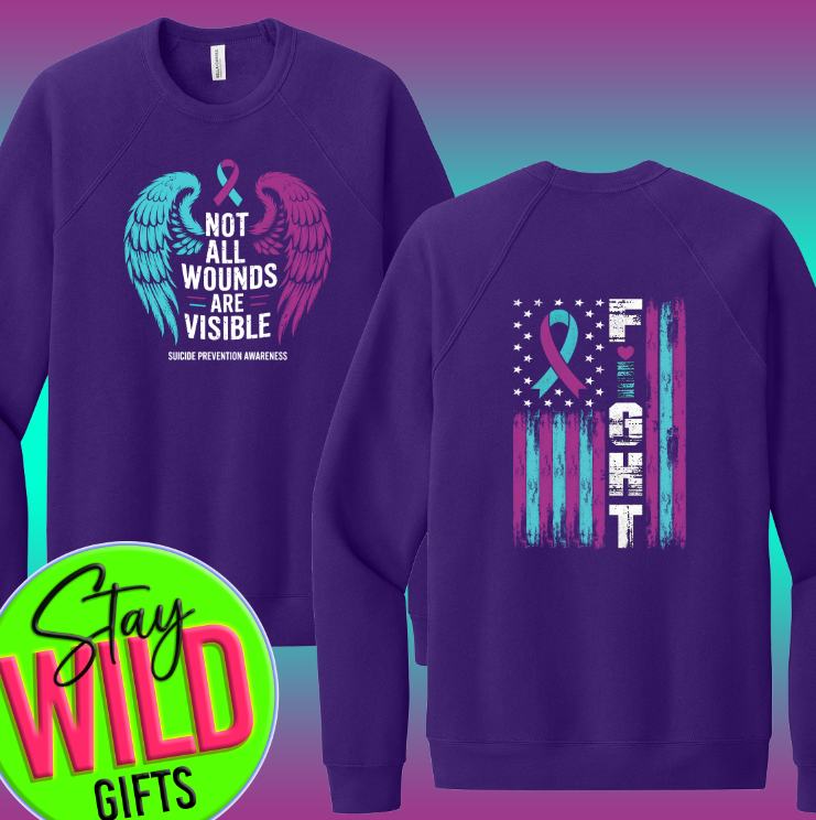 Stand out with the "Not All Wounds Are Visible" apparel. These comfy, soft tees and sweatshirts raise awareness about suicide and reminds us that some struggles are unseen. Perfect for spreading kindness, it’s a great way to start conversations and show support.